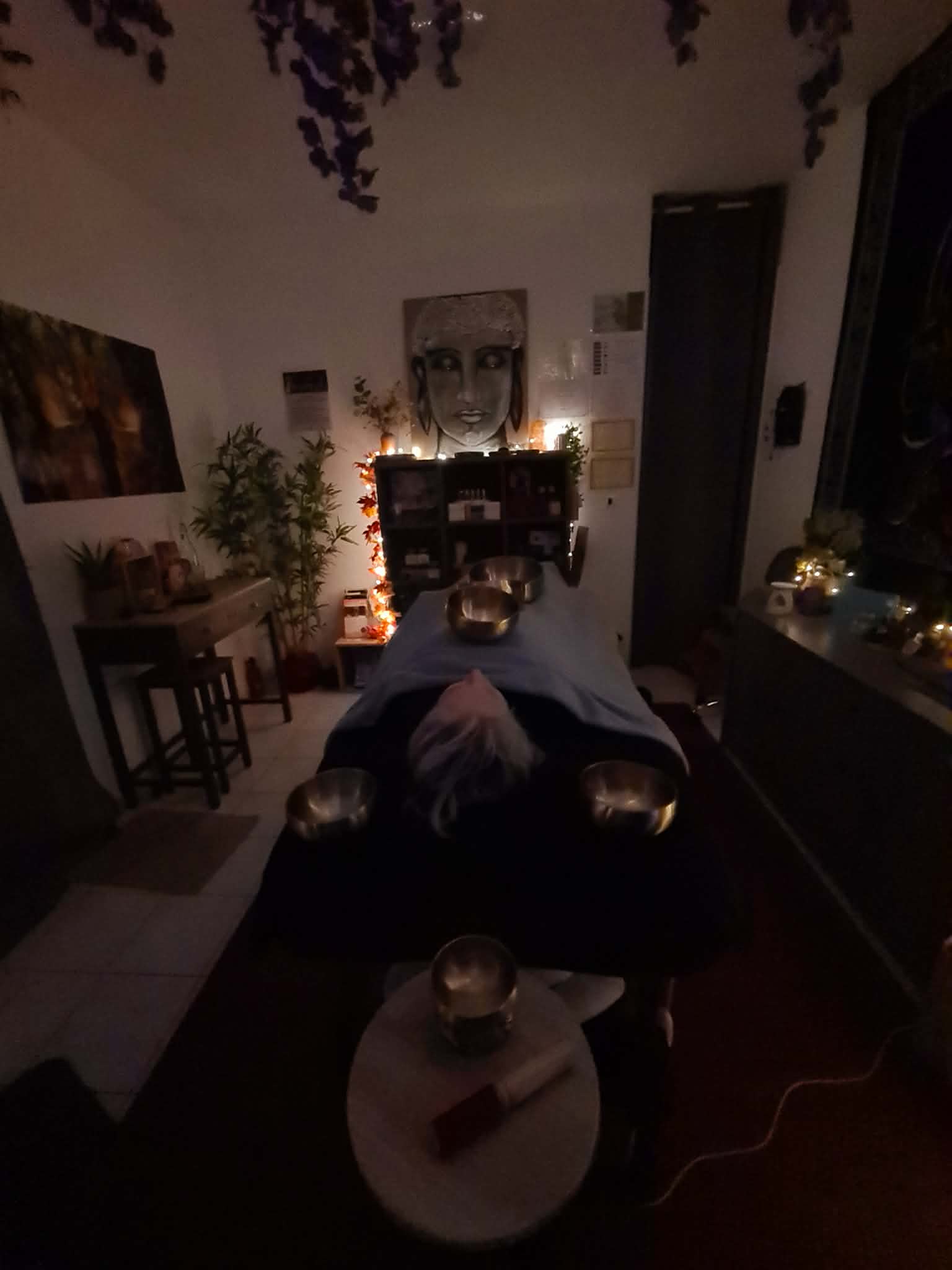 En contact avec les vibrations et fréquences des bols, le corps se détend, l’esprit se calme, les tensions s’apaisent, la circulation énergétique se fluidifie offrant un lâcher prise total ainsi qu’une libération des blocages.